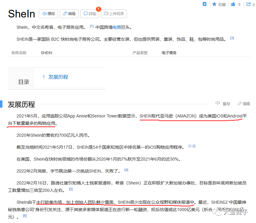 而今年,中国出海产品中有一个低调的纯购物APP平台SHEIN迅速崛起,看看百度的简介: