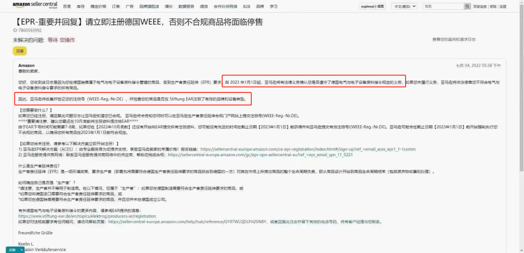 随着德国包装法法规落地生效,卖家们的心也跟着稍作安定,但是近日突然有不少卖家向我们反馈收到了亚马逊强制德国WEEE的邮件,面对突如其来的邮件提示,很多疑问接踵而来: