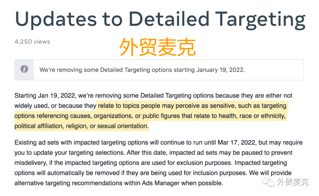 2022年6月19日起,Meta移除了36类广泛定位选项。