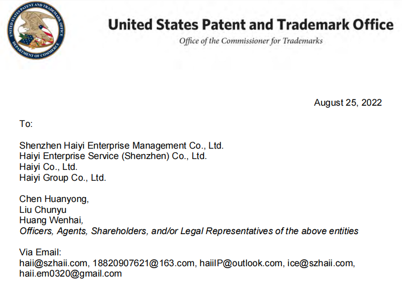 美国商标申请又爆雷!8月25日,美国商标专利局对深圳某公司发出《理由陈述令》,直指该公司触犯法律法规,并提供怀疑造假的证据。