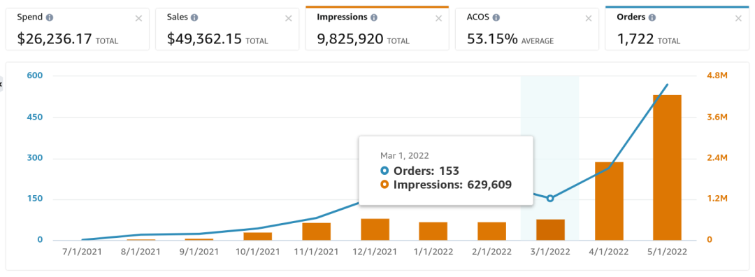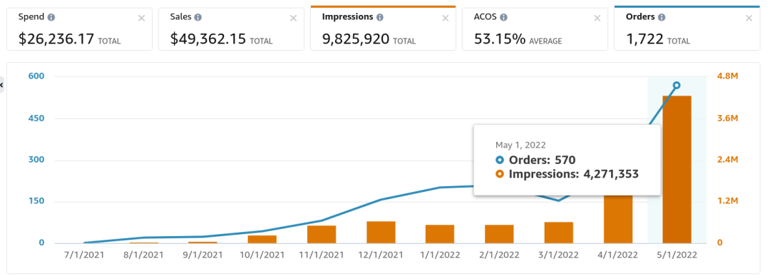 - ACoS稳步下降后增加充投放,继续扩大销量