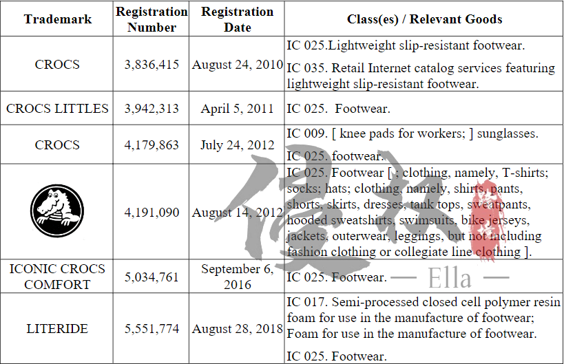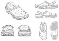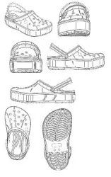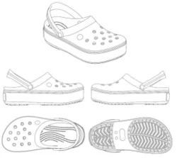 crocs在多个国家注册了商标,不仅注册了文字商标和鳄鱼logo,还将洞洞鞋款式注册成立体商标,以下是部分鞋型: