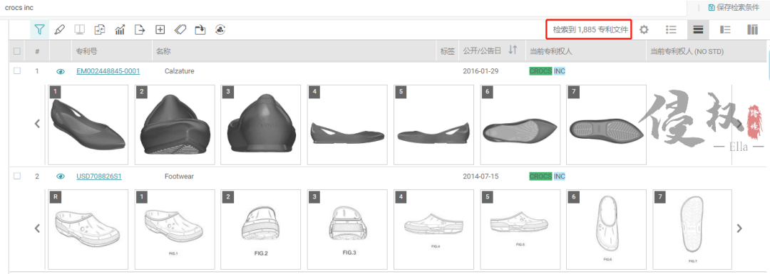 另外,Ella在专利库查到Crocs注册了超过1800件专利,其中有400多件美国专利,涵盖了旗下大部分产品。毫不夸张的说,市面上的洞洞鞋大部分专利是crocs所持有的。