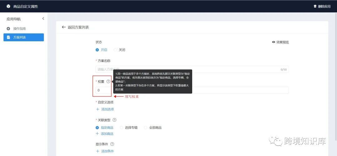 6.填写权重(建议卖家点击权重旁的问号图标获取规则说明)