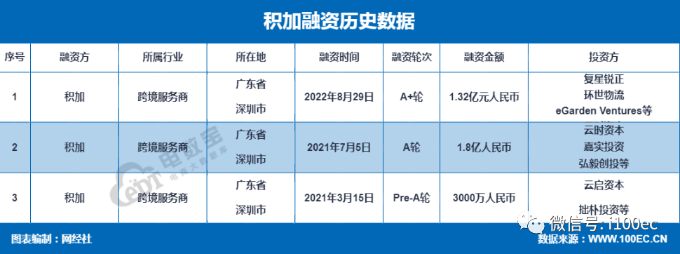 导读:8月29日,跨境电商SaaS服务商"积加"近日宣布完成1.32亿元A+轮融资,本轮融资由复星锐正、环世物流共同领投,eGarden Ventures、云时资本、云启资本超额跟投,众麟资本、光源资本持续加码。