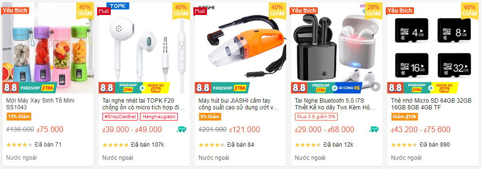 ■ 充电宝: 倍思充电宝 20000毫安(229k VNĐ); TOPK充电宝 10000毫安快充(20W - 434k VNĐ); 平均最佳热销单品 250k VNĐ($10).