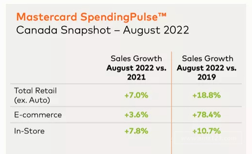 万事达卡高级顾问Steve Sadove表示:"随着假期即将结束,许多人进行了旅行,开始为返校季做准备,加拿大人的支出增长并不奇怪。但值得注意的是,与疫情流行之前的水平相比,加拿大电商销售增长继续强劲增长,这意味着,虽然店内购物恢复弹性,但是人们网购的习惯已经形成。"