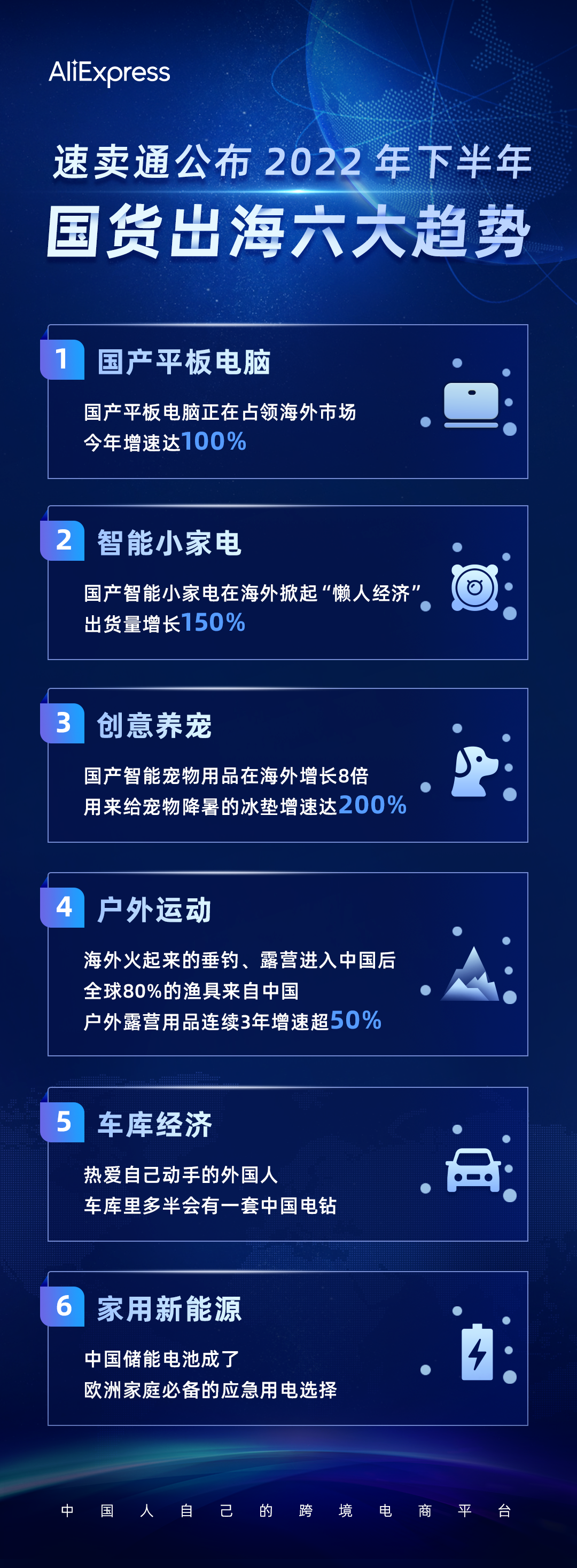 "国货出海六大趋势"全新出炉:国产平板电脑、智能小家电、创意养宠、户外运动、车库经济和家用新能源成为海外消费者新偏好。
