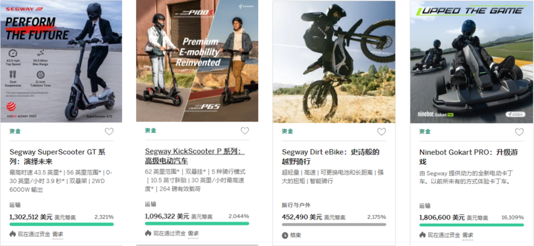 Segway是国内创新交通和机器人领域出海头部品牌——九号公司(Segway-Ninebot)旗下的子品牌,九号深耕创新型短交通领域已有十年之久,在该领域内有成熟的技术,通过多年来选择"新品海外众筹首发"的形势打通了海外销售渠道,目前已在海外众筹平台共计发起了10+次产品首发众筹,累计众筹金额超2000万美金。