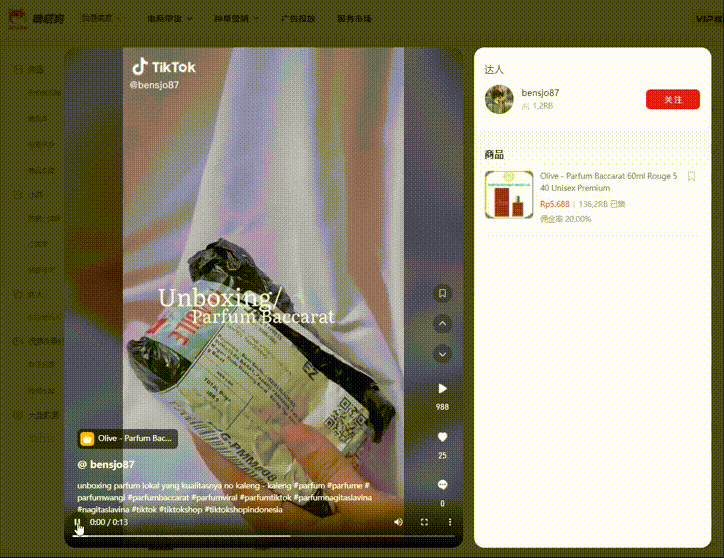 这款香水的带货达人用开箱视频的形式进行带货,展示了产品包装的完整性,同时让用户跟随带货达人的开箱步骤观看产品,有真实的体验氛围,容易建立用户的信任。