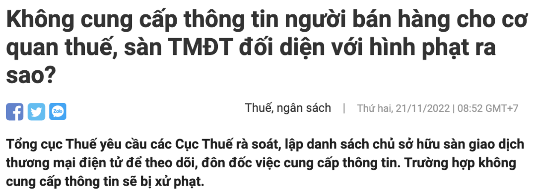 据悉,越南税务总局日前向各省、直辖市税务部门发出公文,要求贯彻落实第 91/2022/ND-CP 号法令,指导电商平台/网站所有者按规定提供卖家信息。