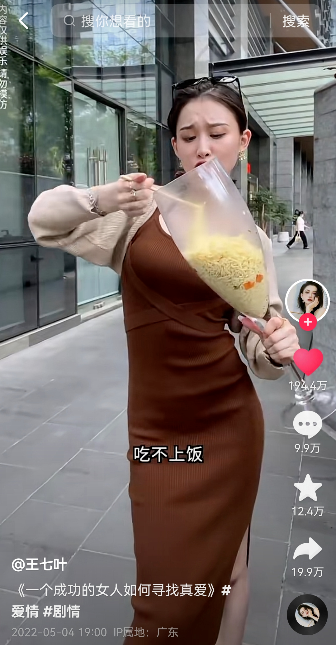 不知道大家在刷抖音的时候有没有刷到过这样的视频:视频主角为一个女生,她一边迈着六亲不认的步伐向镜头走近、一边说着"凡是被我看上的男人,我都会送他两套房。一套是我的左心房,一套是我的右心房"这类的土味情话,还不忘在短短十几秒的视频中做出wink、弹舌、踢跳等一系列动作,可谓是颜值与油腻并存的女子,她就是——王七叶。