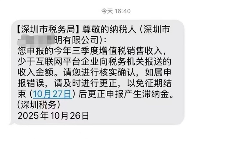 随着亚马逊等平台向税务部门报送卖家收入数据,从 10 月 26 日下午开始,大批卖家收到了税务局的短信提醒。
