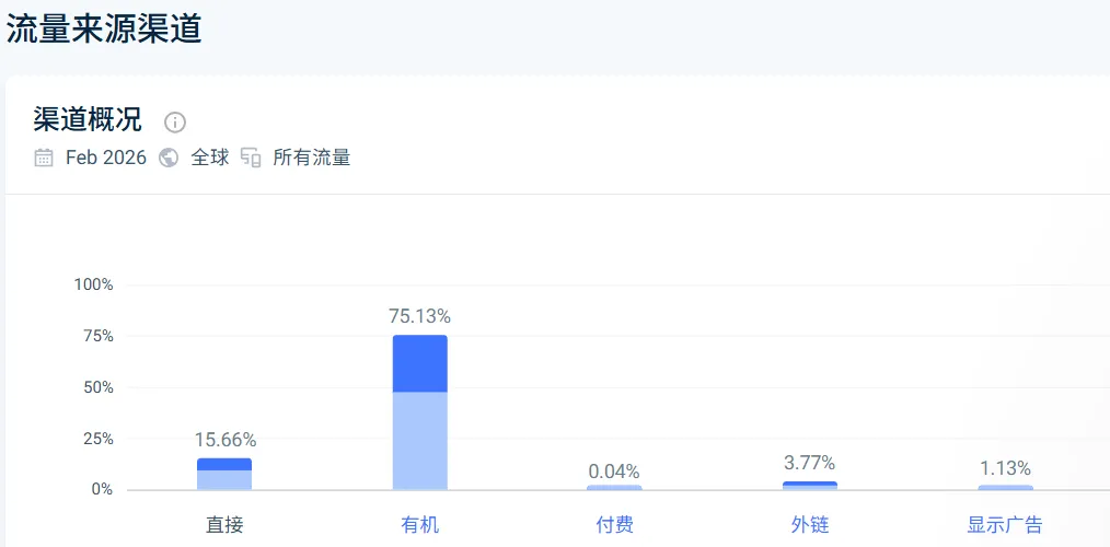 核心流量渠道来自SEO的有机搜索。所以,我们专门来分析他的SEO流量哈